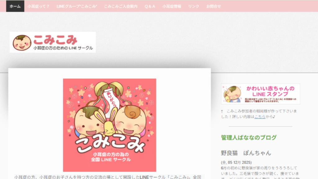 「こみこみ」は、小耳症当事者や家族が参加するLINEベースのコミュニティ群の総称として紹介されているます。片耳・両耳・合併症ありなど、属性別に複数のグループが存在し、自分に合ったコミュニティに参加できる仕組みが特徴です。情報交換だけでなく、経験談や生活面の悩み共有など、ピアサポートの役割が大きいです。このような当事者コミュニティは、小耳症児を育てていく過程で重要な情報源となっています。